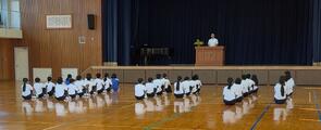 久しぶりに体育館に生徒が集まり、静かな中にも少し緊張感の漂う雰囲気で式が始まりました。